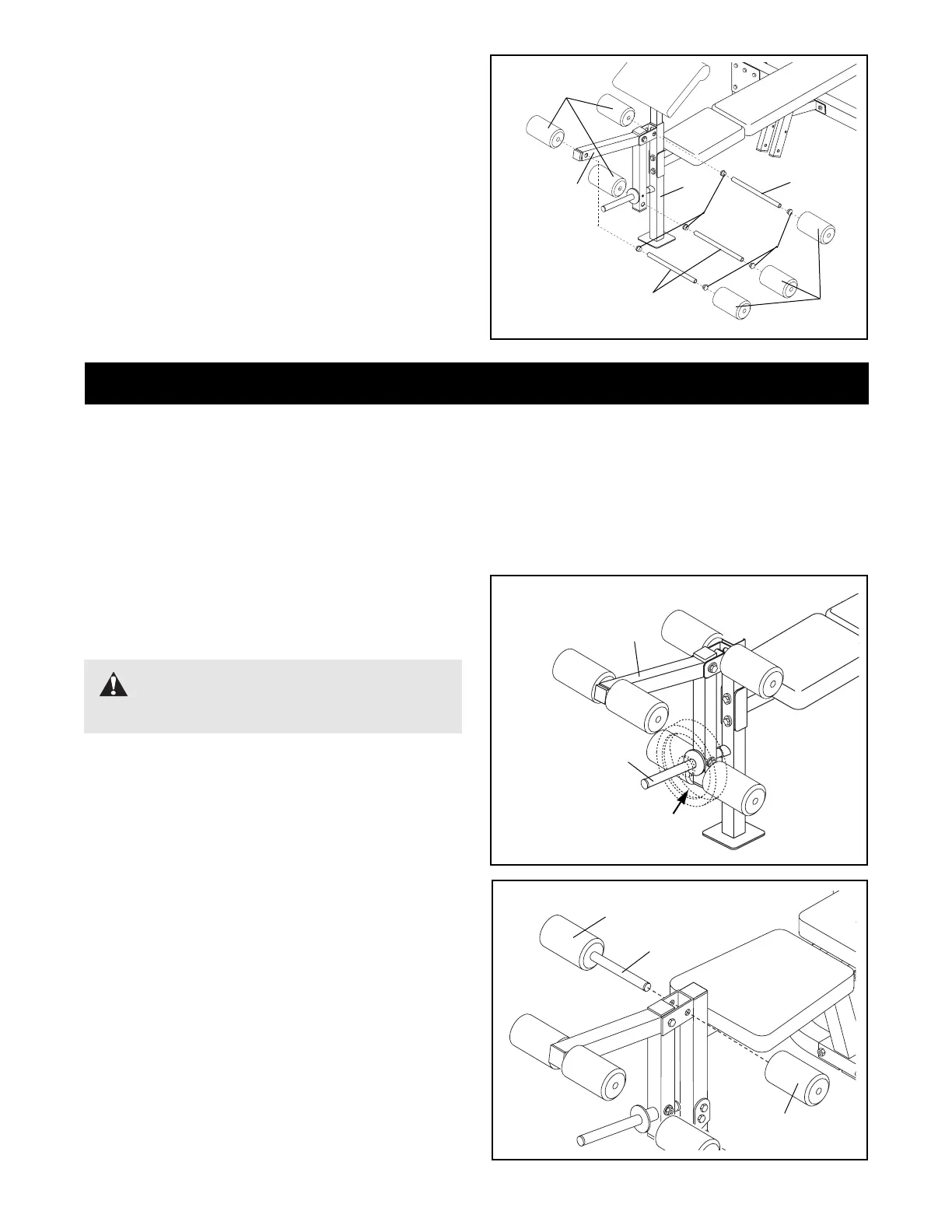 The weight bench is designed to be used with your own weight set (not included). The steps below explain how