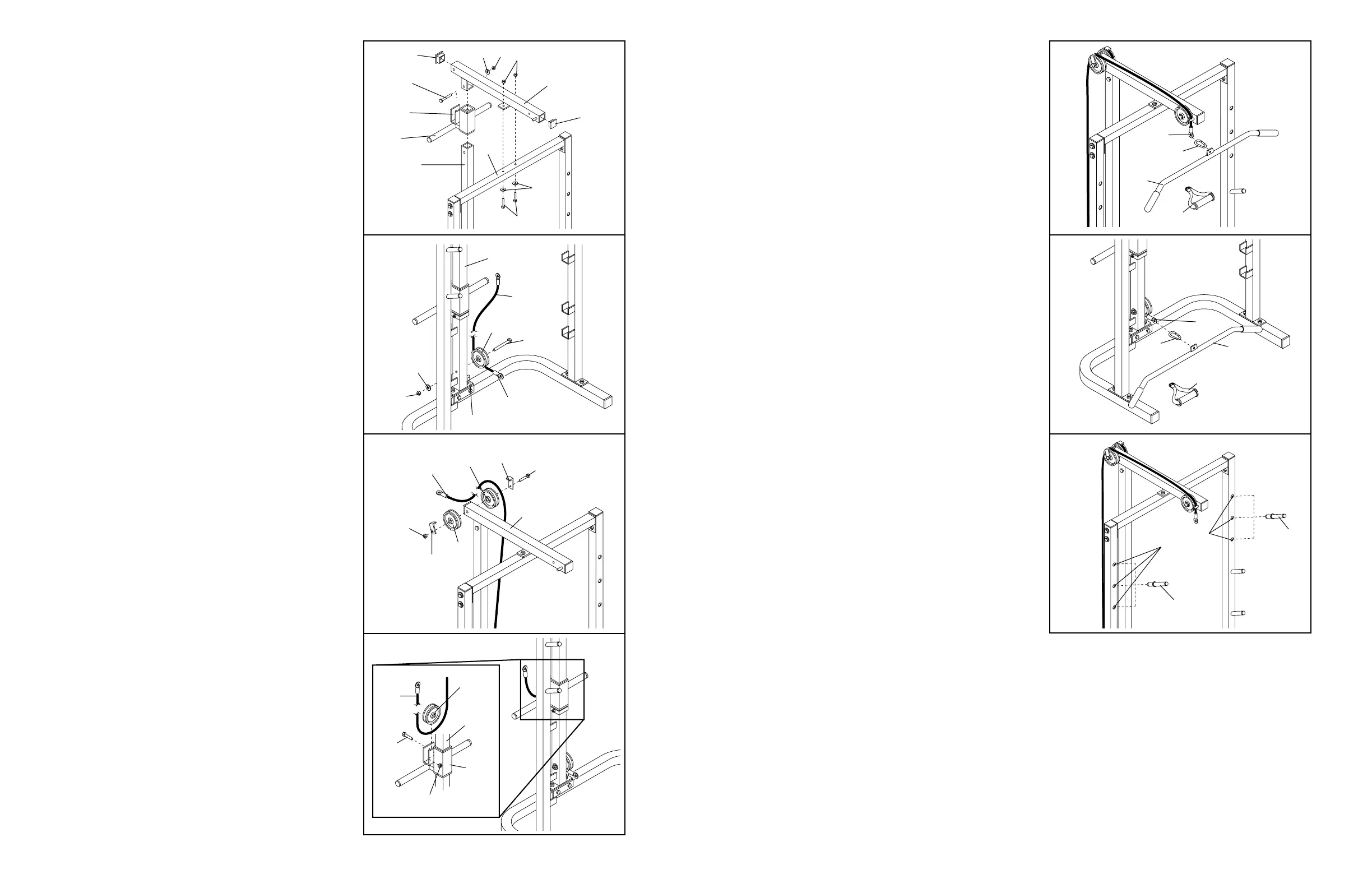 7. Attach two Pulleys (24) and two Cable Traps (23) to