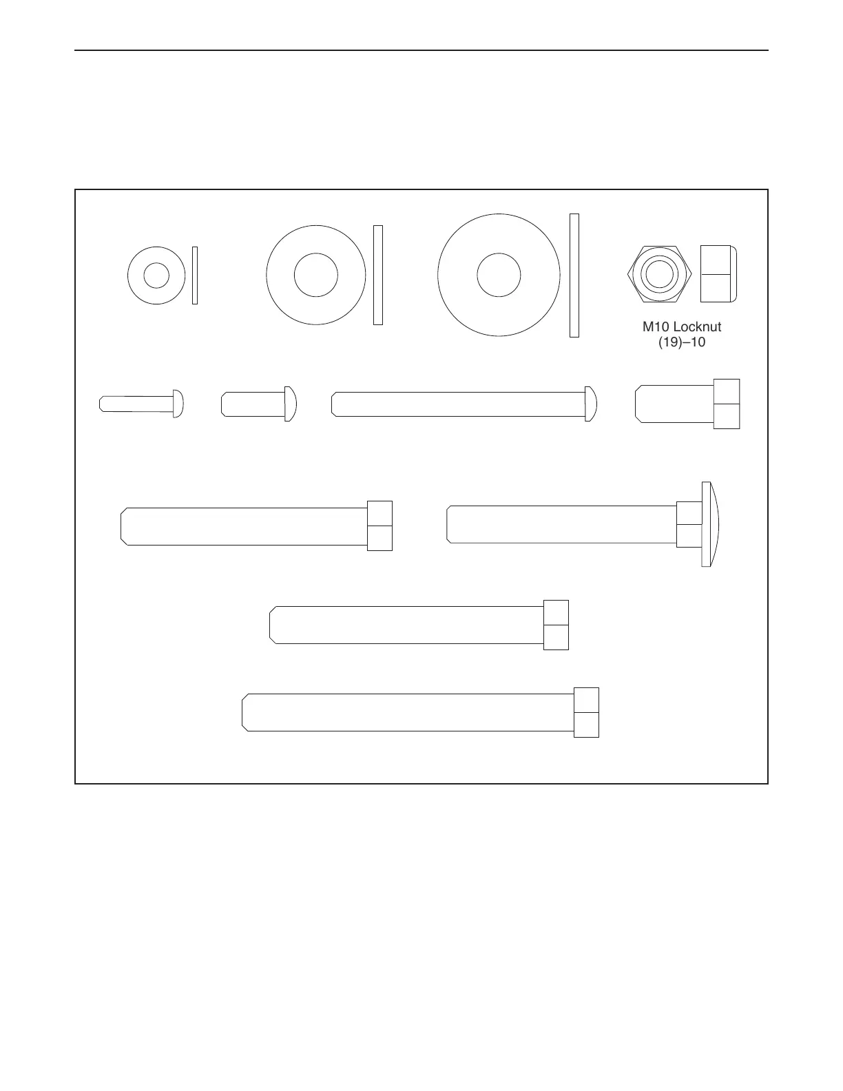 See the drawings below to identify small parts used in assembly. The number in parentheses by each drawing is