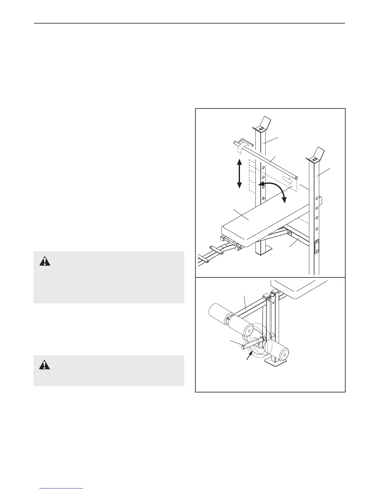 The weight bench is designed to be used with your own weight set (not included). The steps below explain how