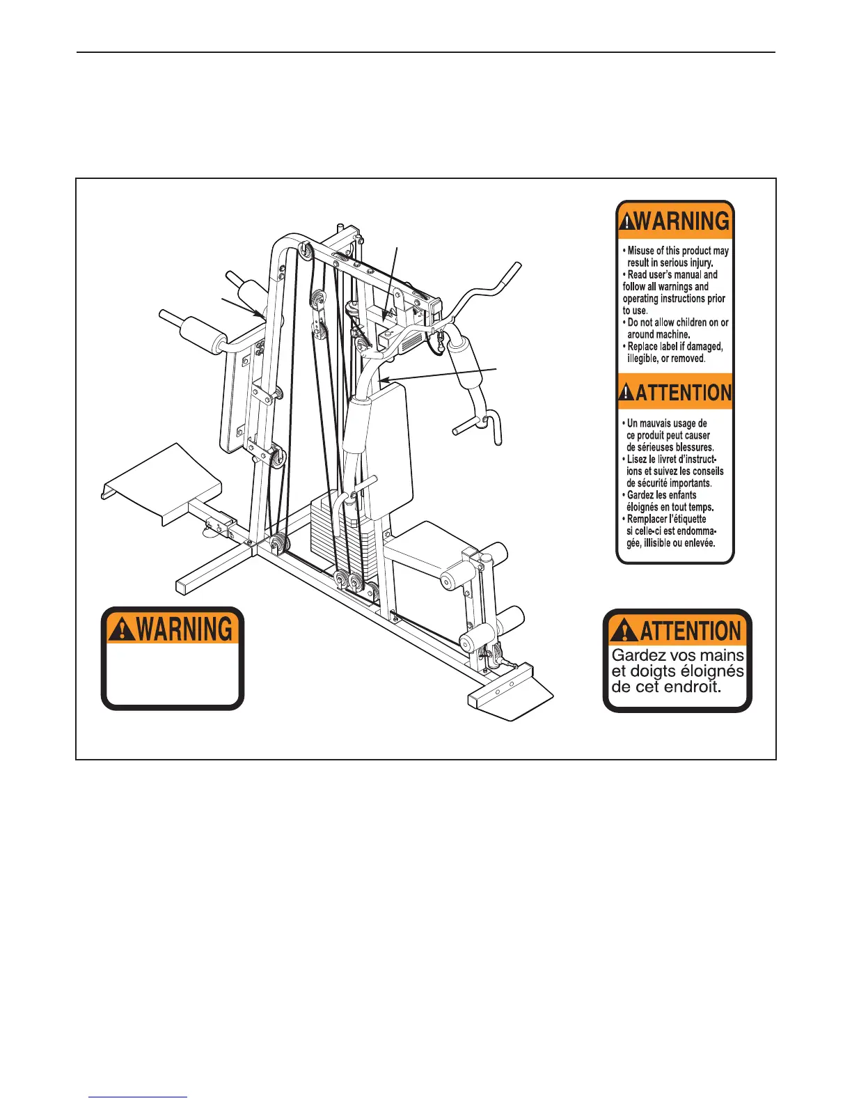 The decals shown here have been placed on the weight system. If a decal is missing or illegible, please