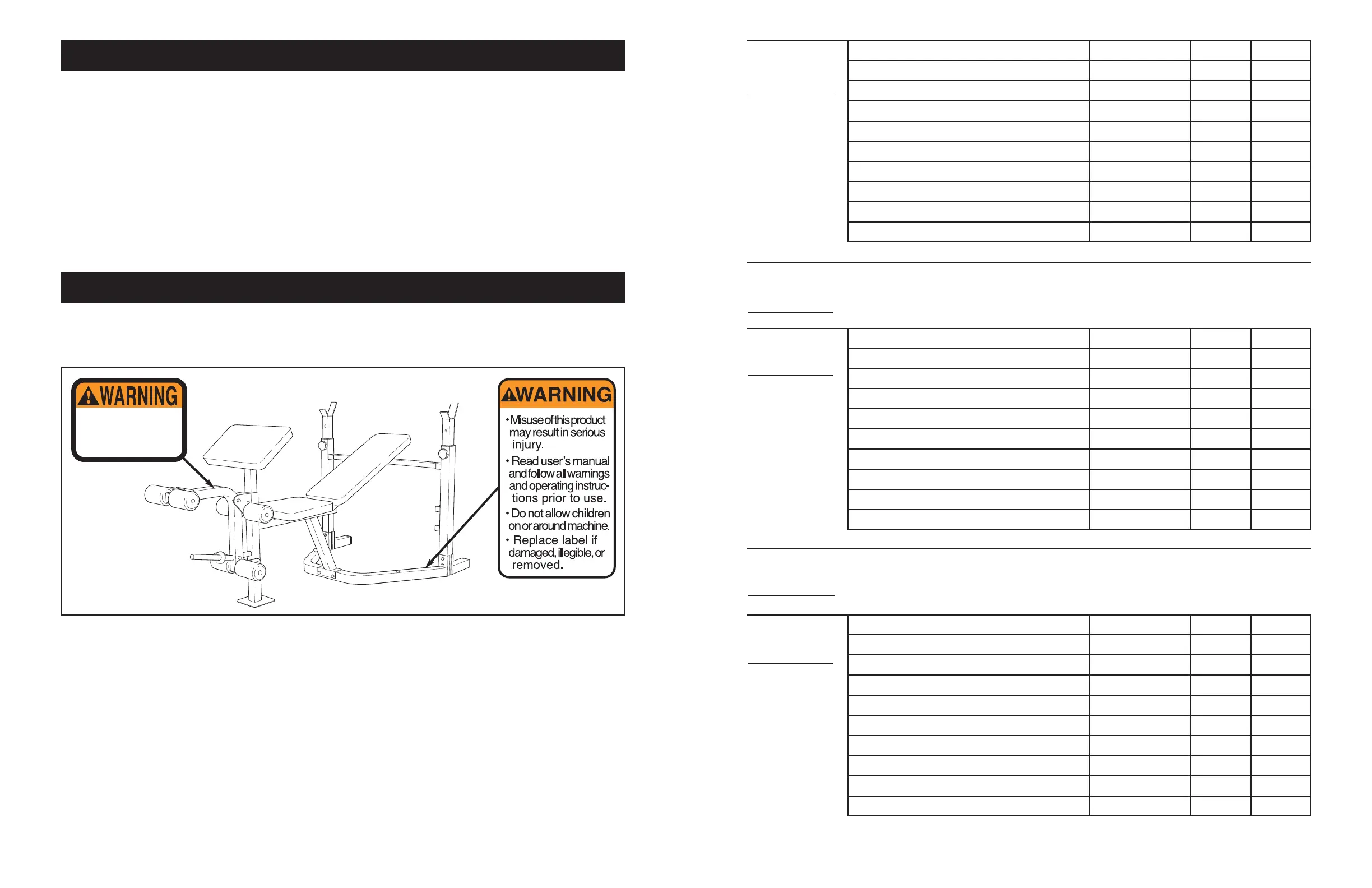 The decals shown below have been placed on the weight bench. If a decal is missing, or if it is not legi