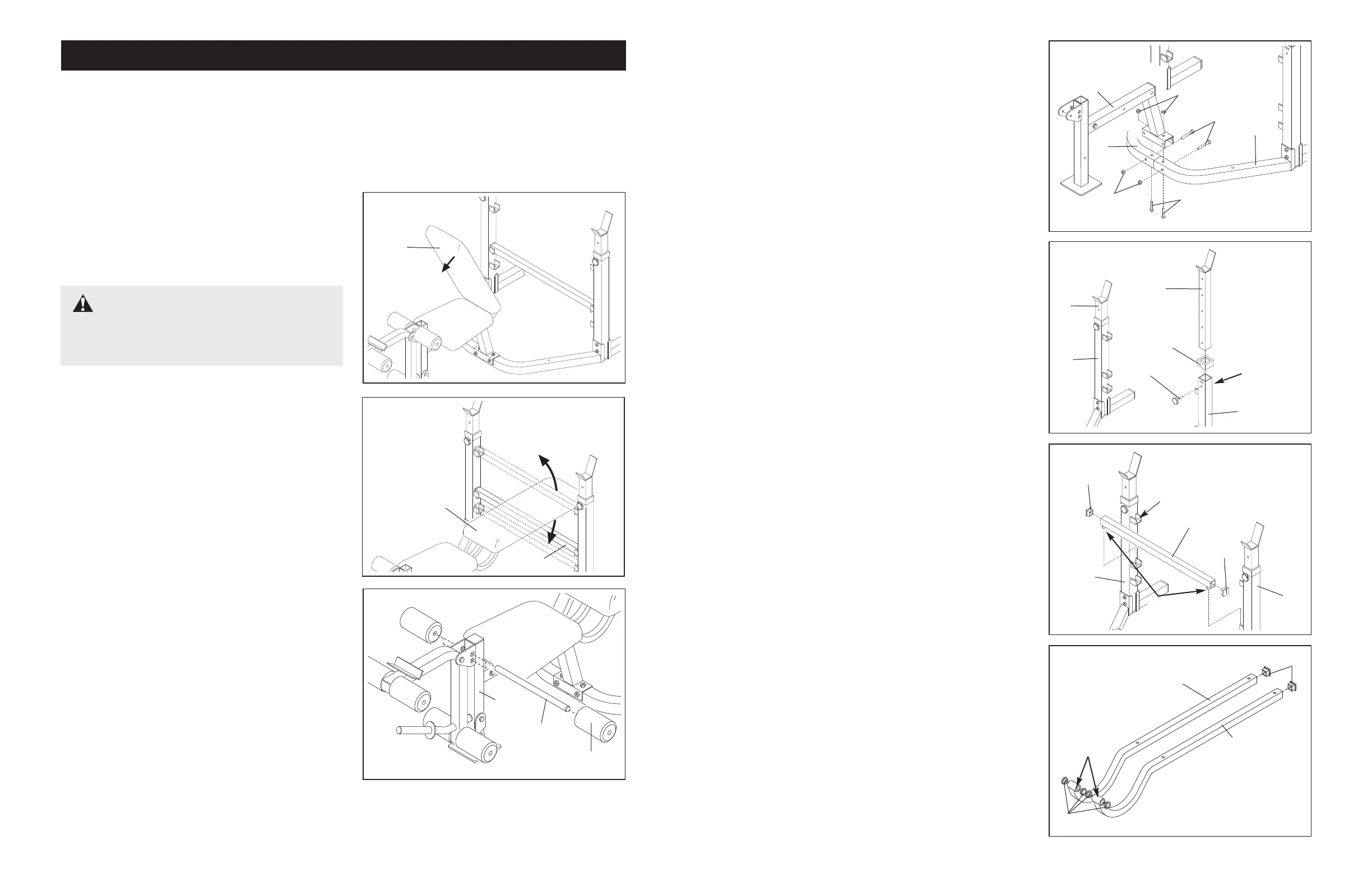 Inspect and tighten all parts each time you use the weight bench. Replace any worn parts immediately. The
