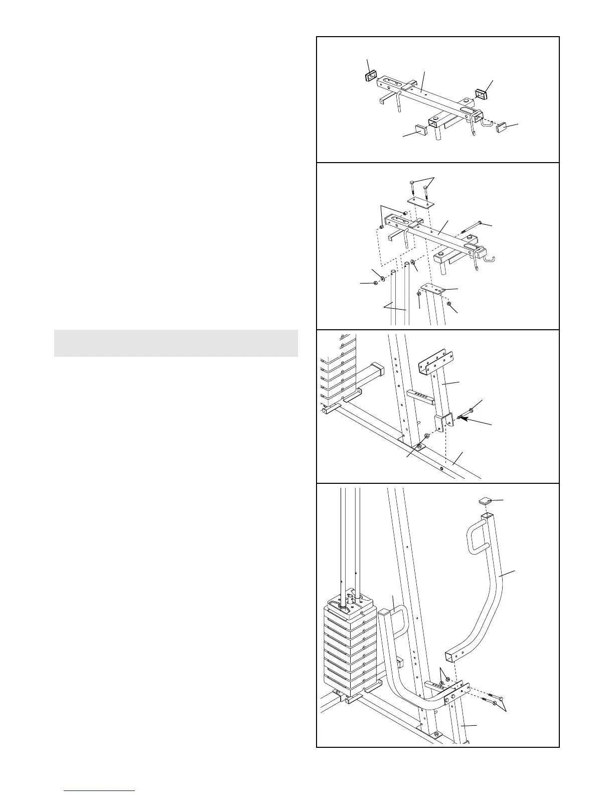 Attach the Weight Guides (62) to the Top Frame