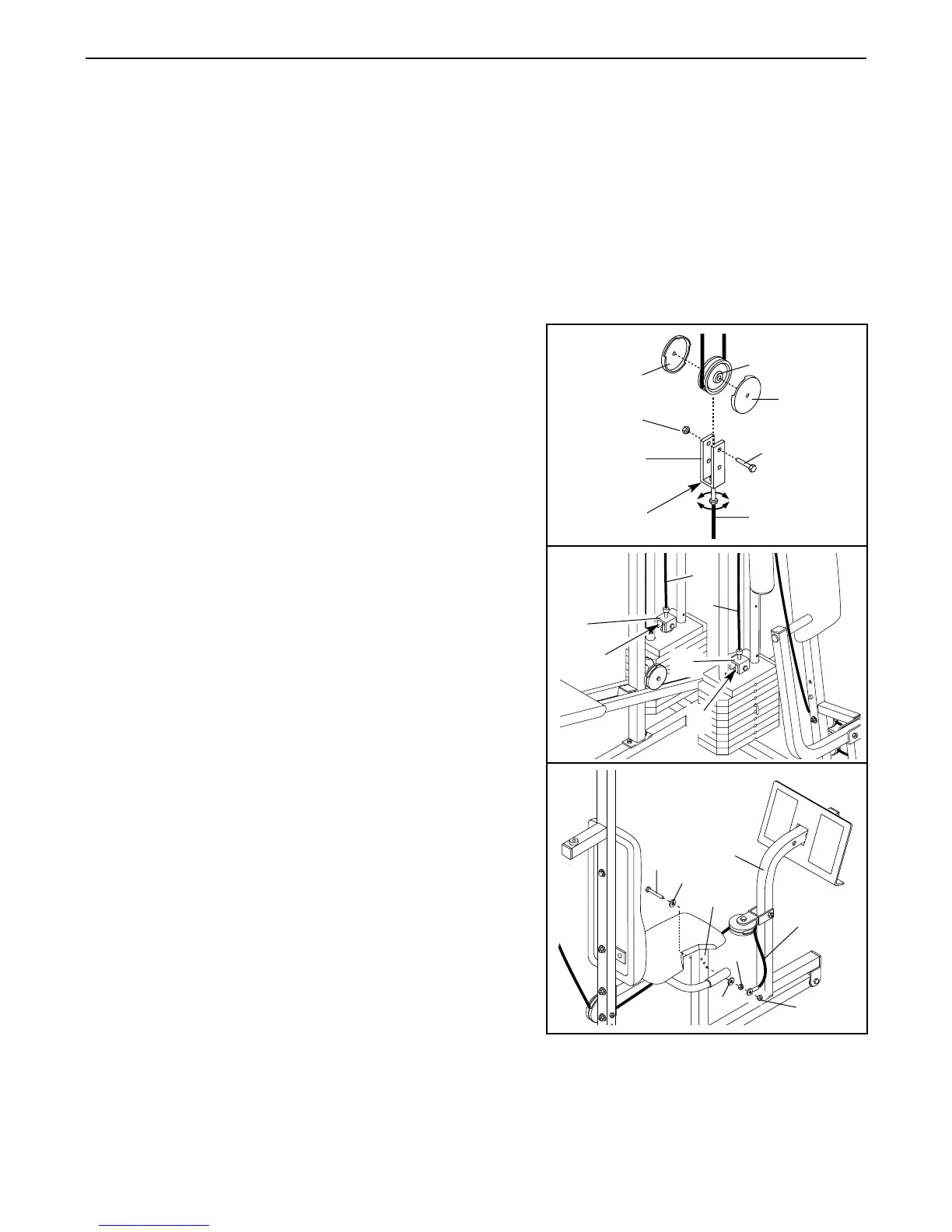 front weight stack, both the High Cable (58) and the Low Cable (23) will need to be tightened. If any slack is felt