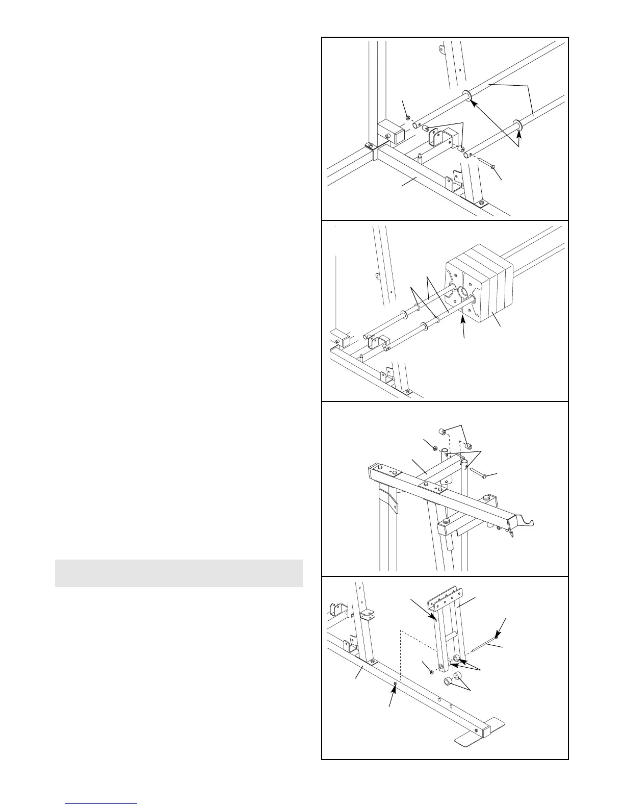4. Attach the two Weight Guides (62) and two 1/2” x