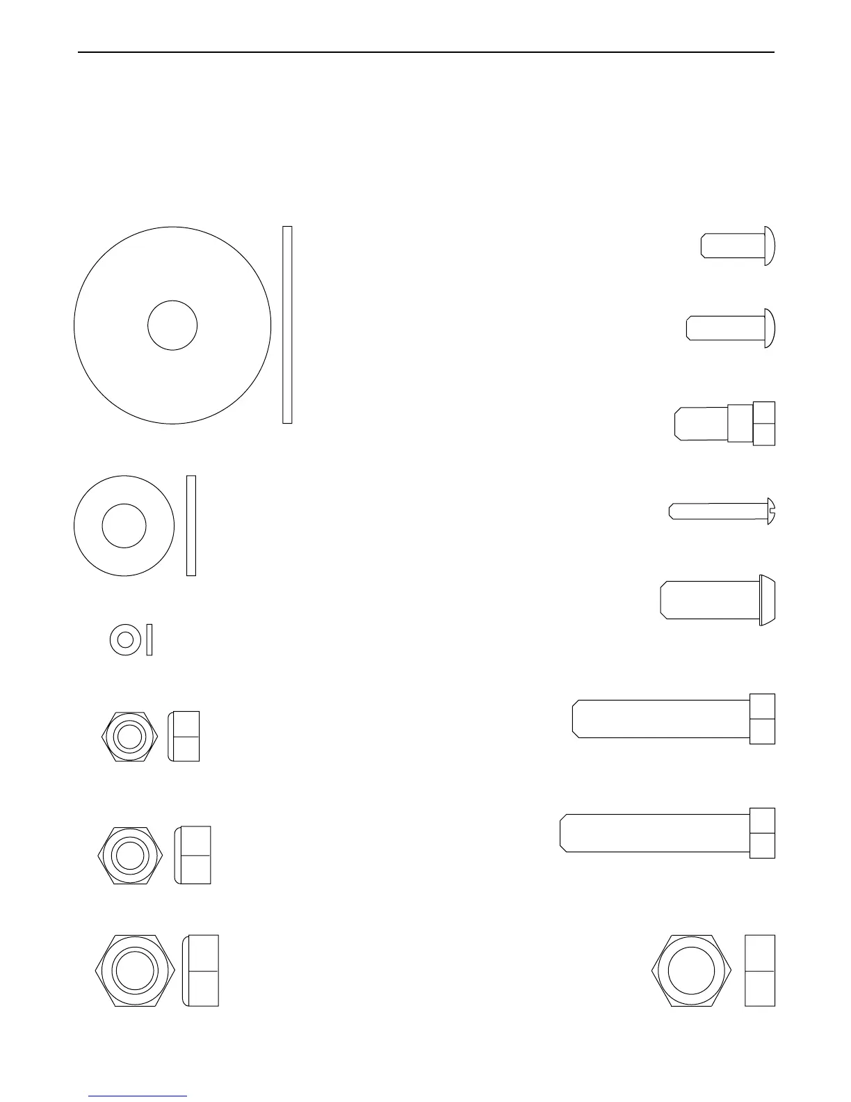 Refer to the drawings below to identify small parts used in assembly. The number in parentheses by each draw-