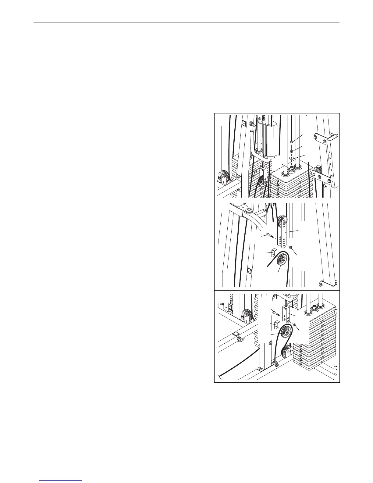 weight pins into the centers of the weight stacks. Slack can be removed from the cables in several ways: