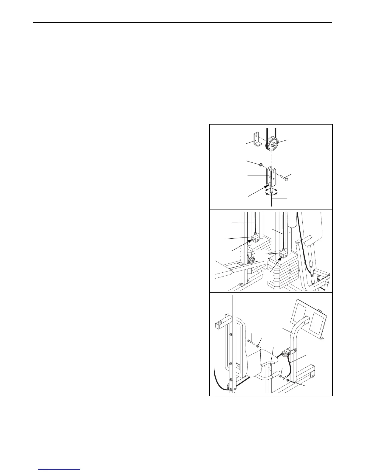 front weight stack, both the High Cable (58) and the Low Cable (23) will need to be tightened. If any slack is felt