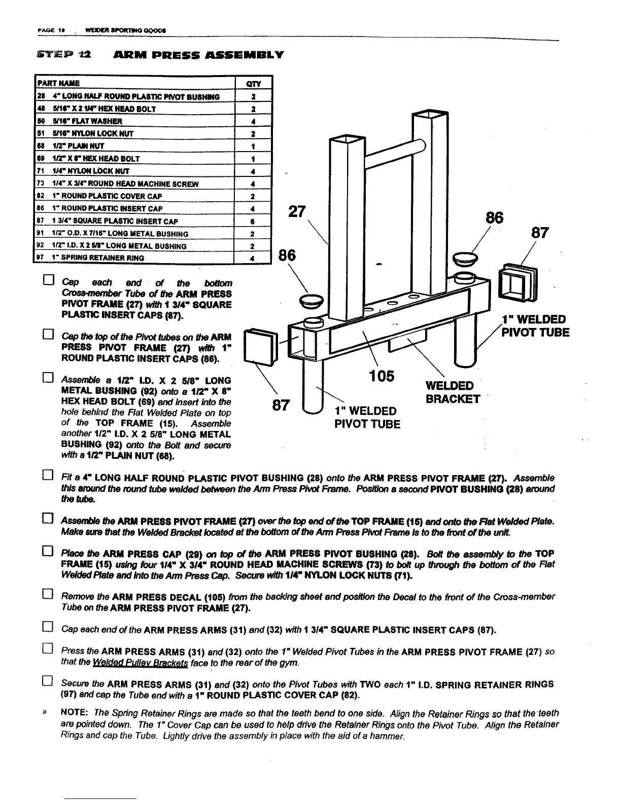 Weider X4s Power Guide - Arm Press Assembly