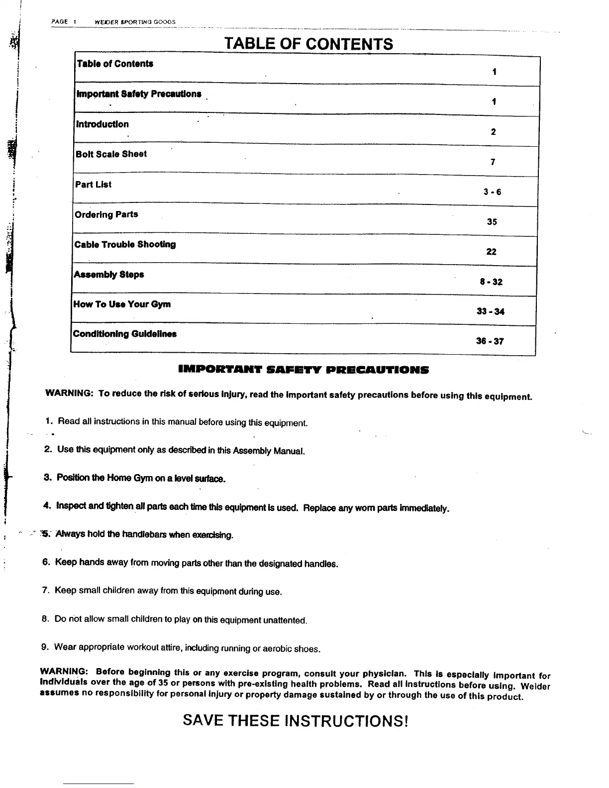 Weider X4s Power Guide - Important Safety Precautions; General Safety Guidelines