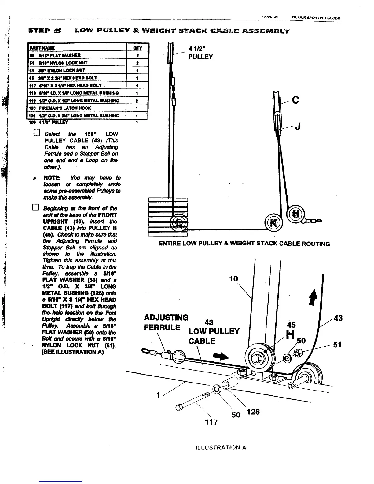 Weider X4s Power Guide - Low Pulley & Weight Stack Cable Assembly