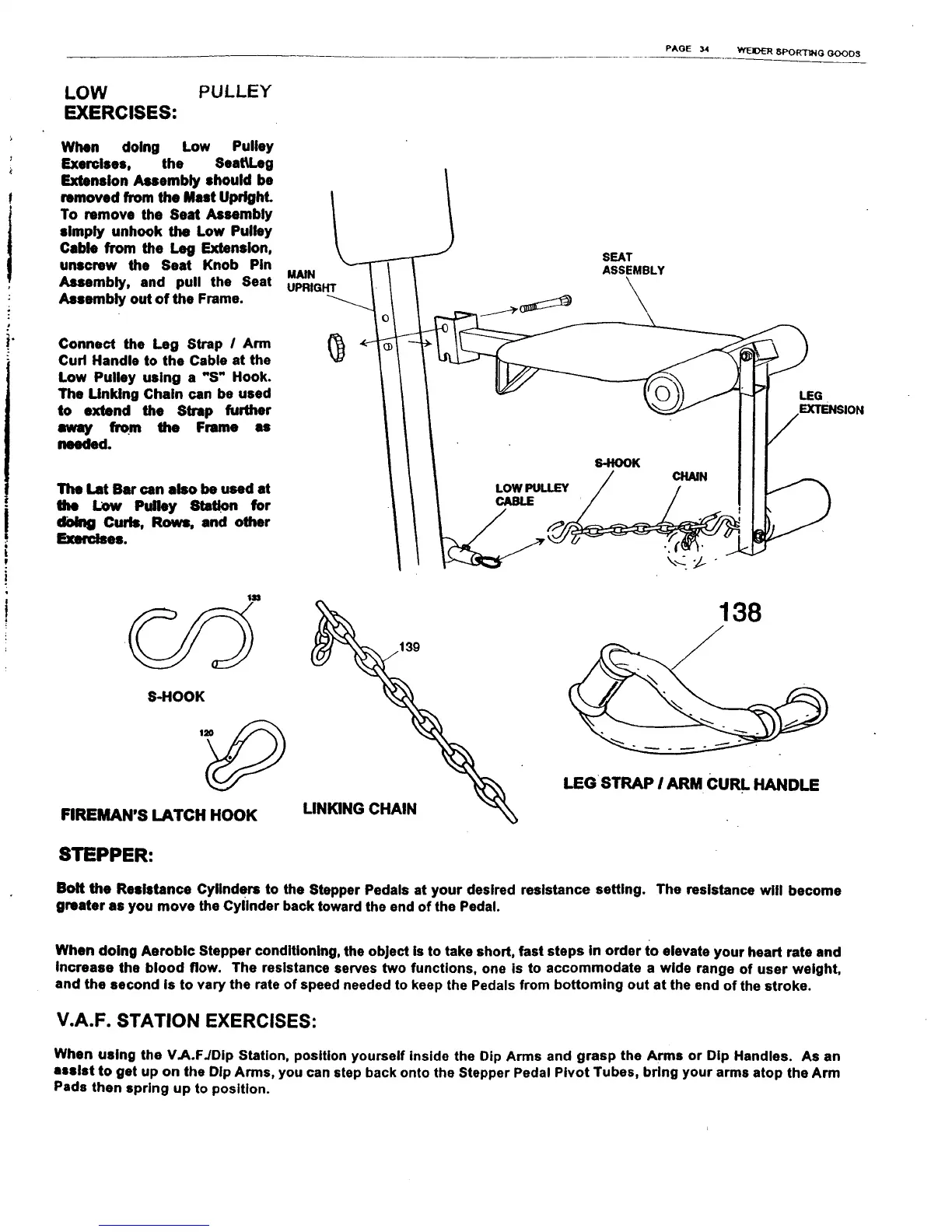 Weider X4s Power Guide - Low Pulley Exercises; Stepper; V.A.F. Station Exercises