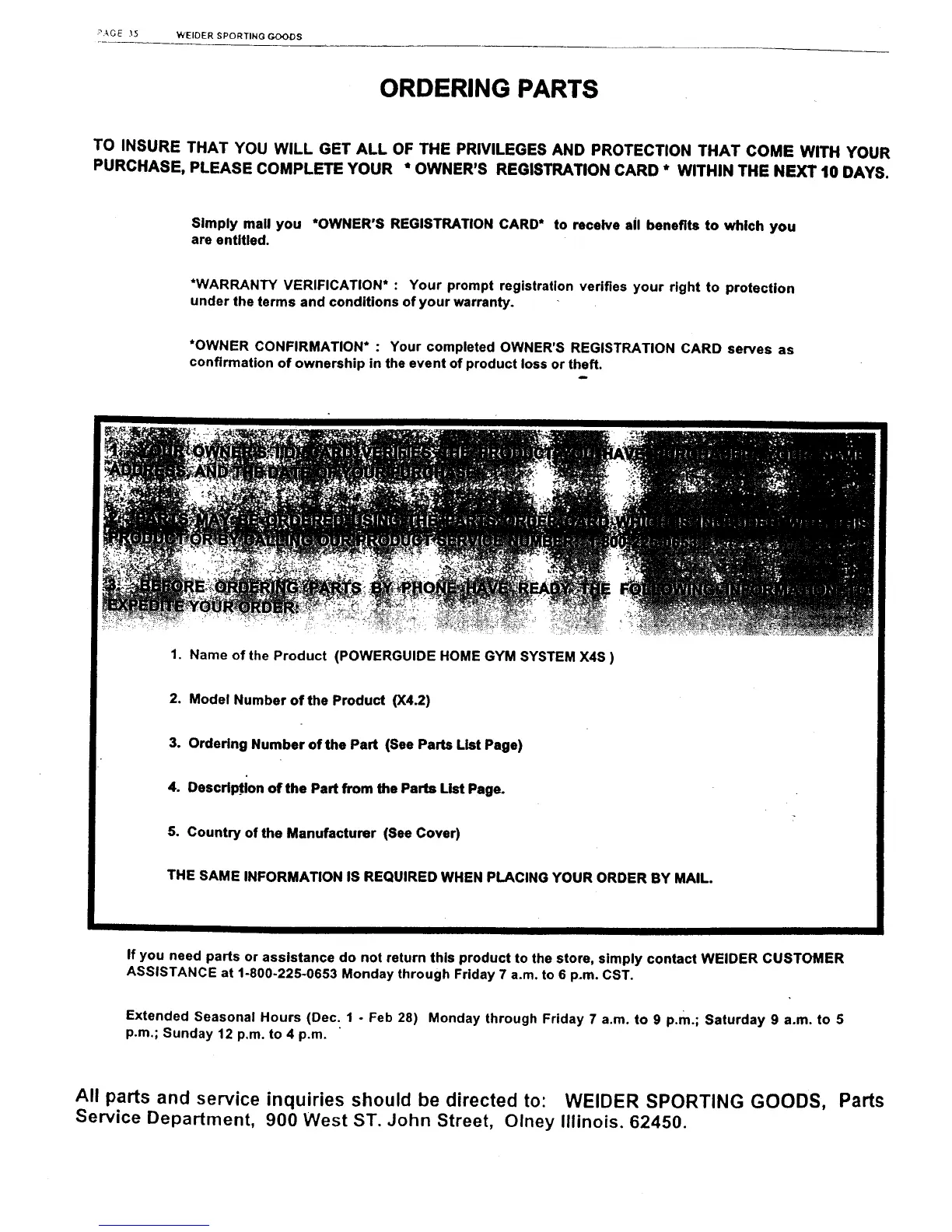 Weider X4s Power Guide - Ordering Parts