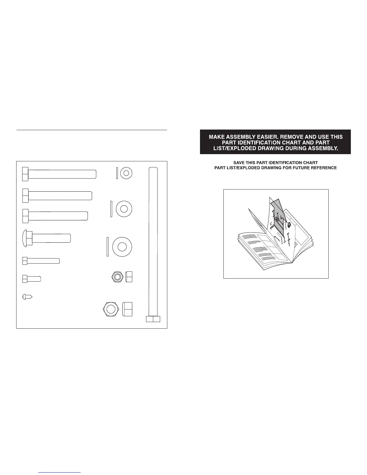 This chart is provided to help you identify the small parts used in assembly. The number in parenthesis below