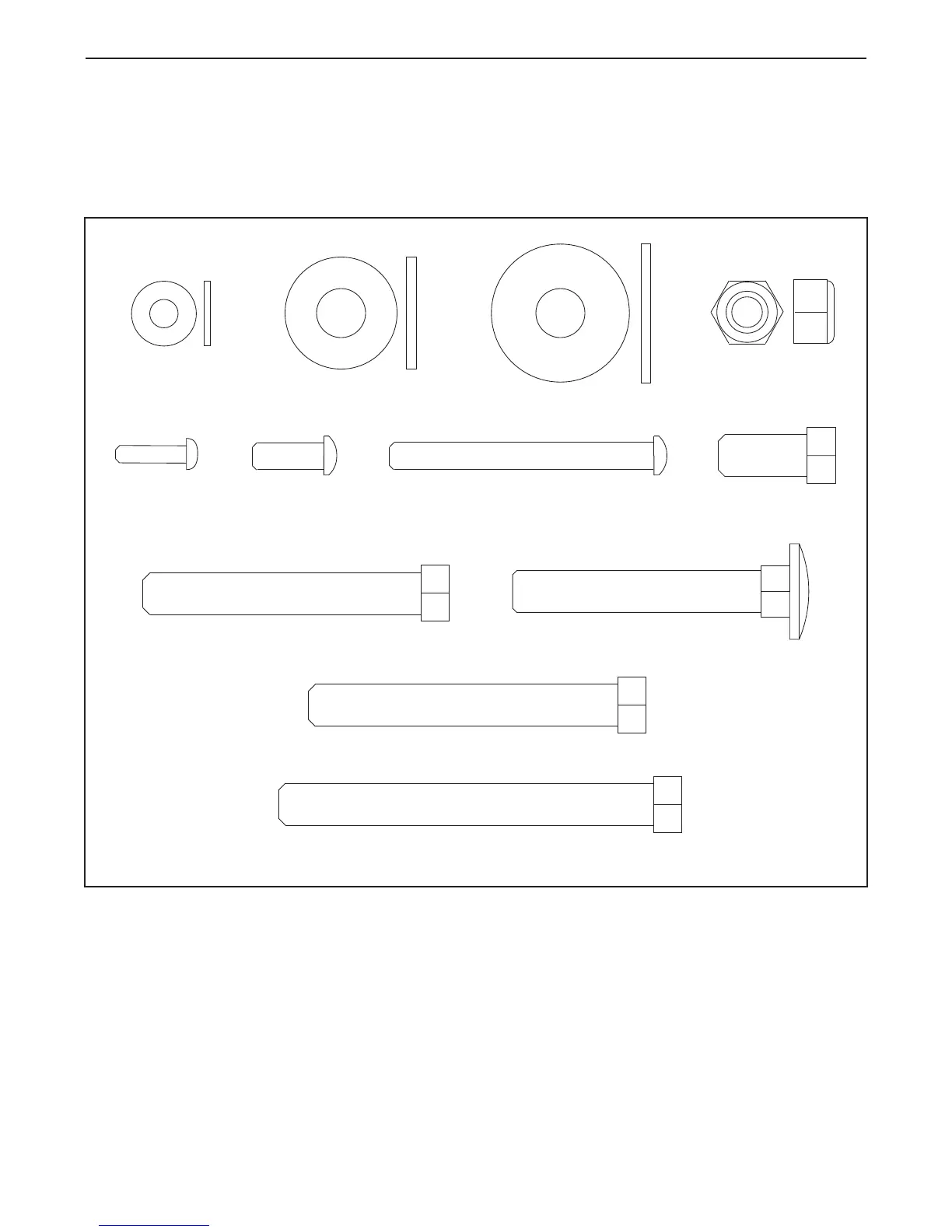 See the drawings below to identify small parts used in assembly. The number in parentheses by each drawing is