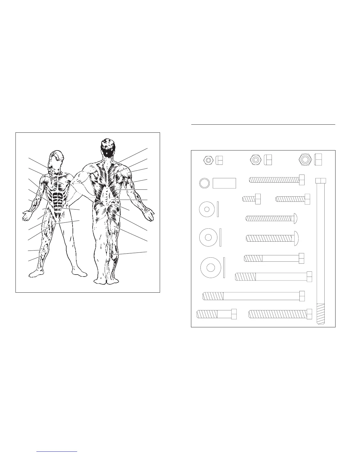 This chart is provided to help you identify the small parts used in assembly. The number in parenthesis below