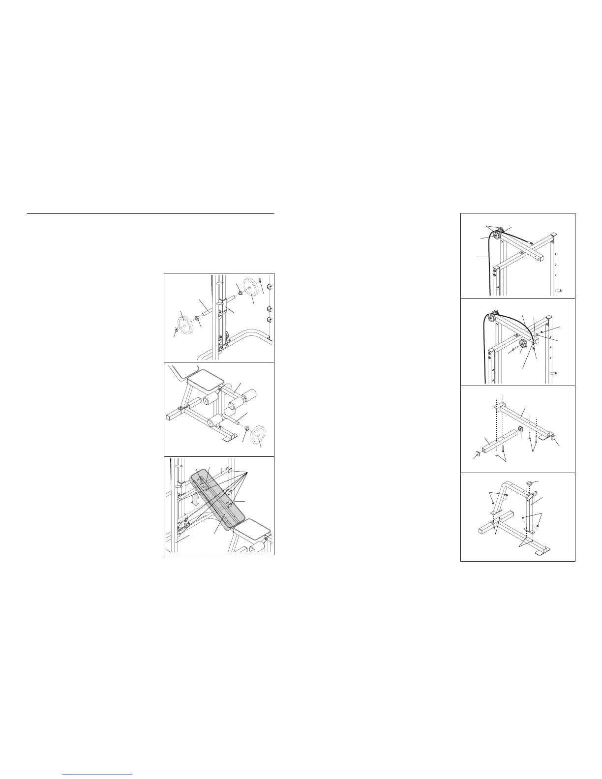 Inspect and tighten all parts each time you use the weight bench. Replace any worn parts immediately. The