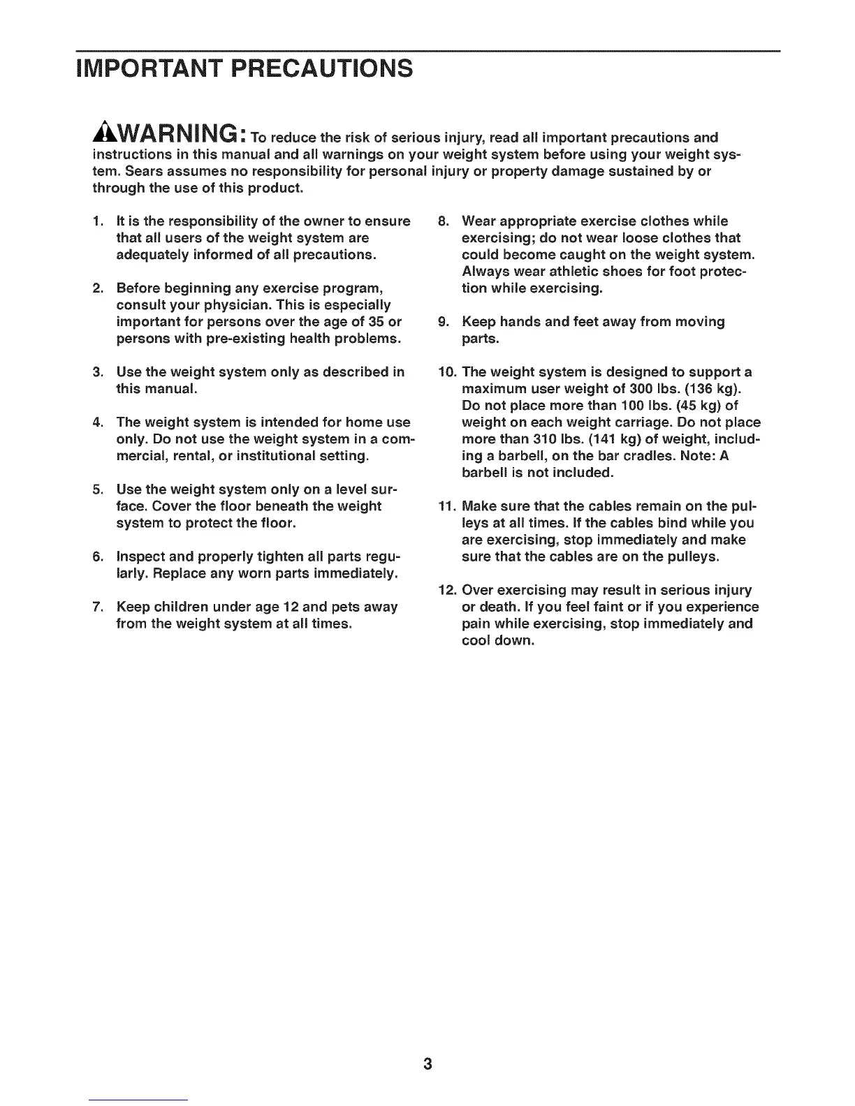 instructions in this manual and all warnings on your weight system before using your weight sys-