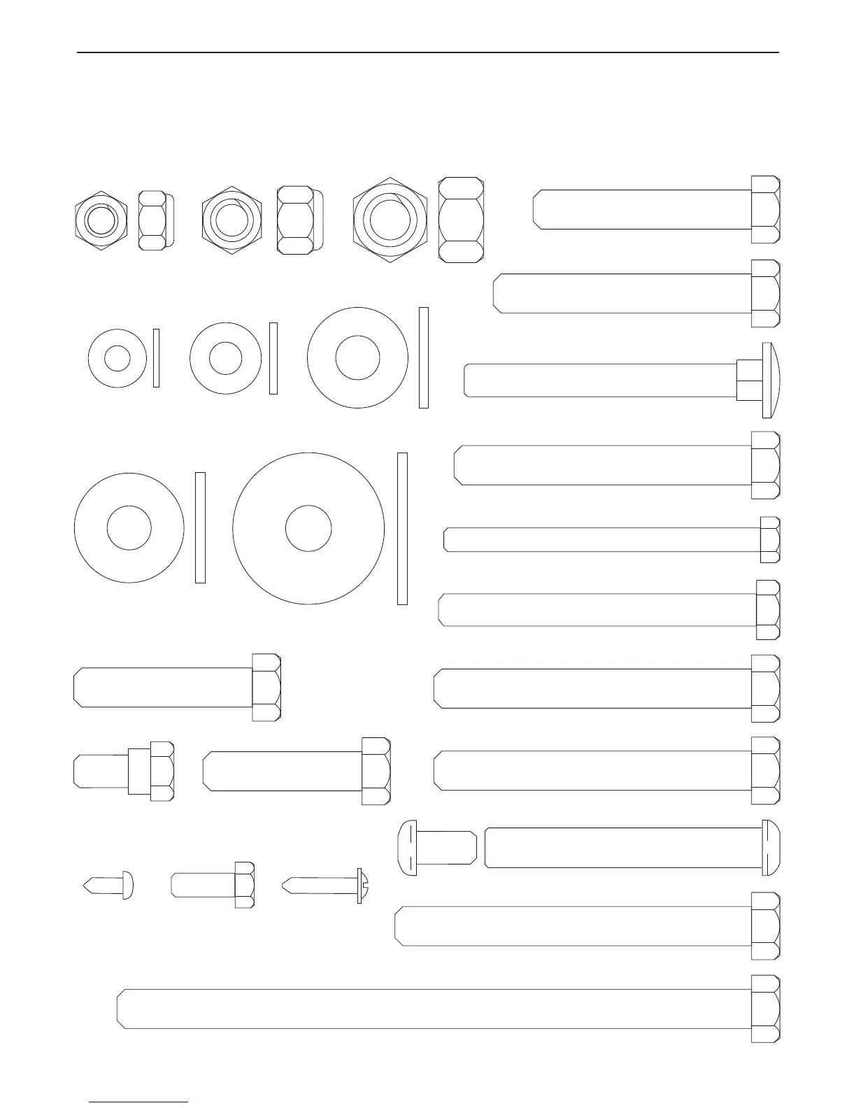 Refer to the drawings below to identify small parts used in assembly. The number in parentheses by each draw-