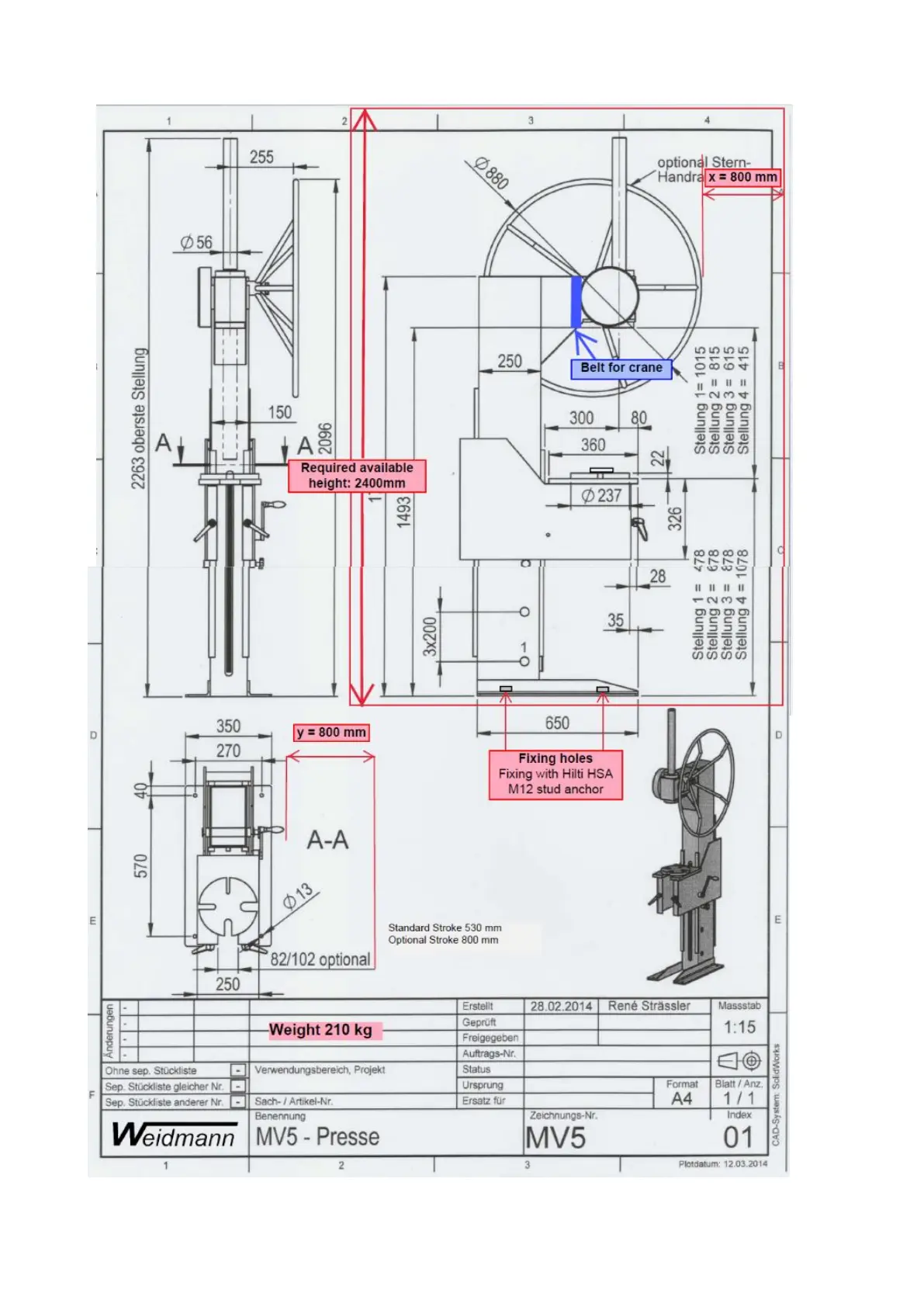 Weidmann MV5 - Dimension Diagram (Layout;Plan View)