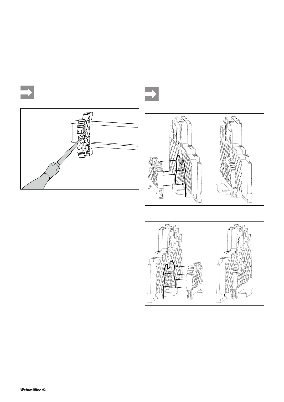 ▶ Place the WEW35/2 end bracket on the terminal rail and