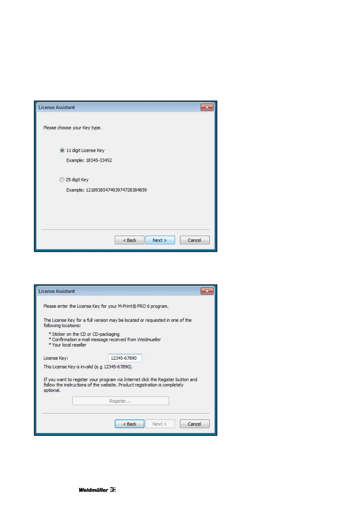 4 Enter the 11-digit license key shown on the case of the DVD that came with the printer.
