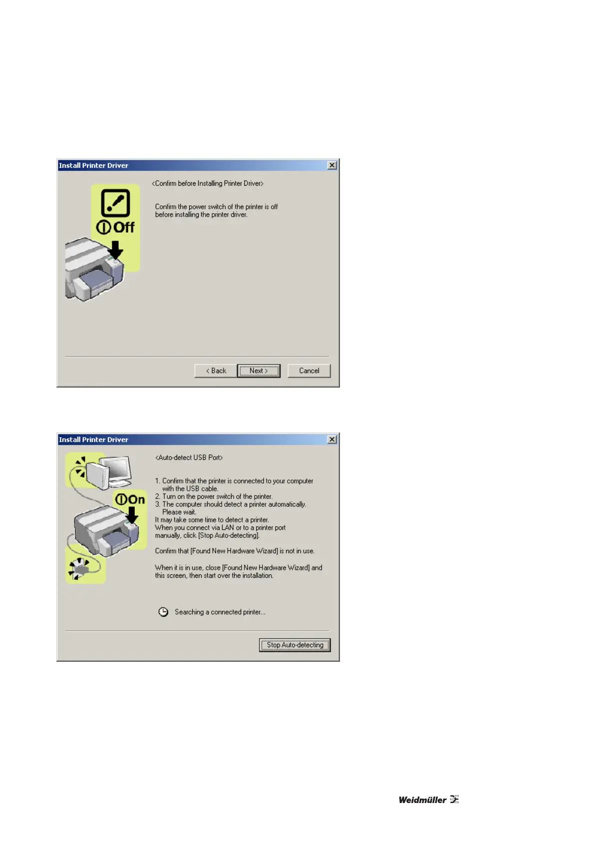 4 Turn on the printer when this window appears. The printer driver will now be installed.
