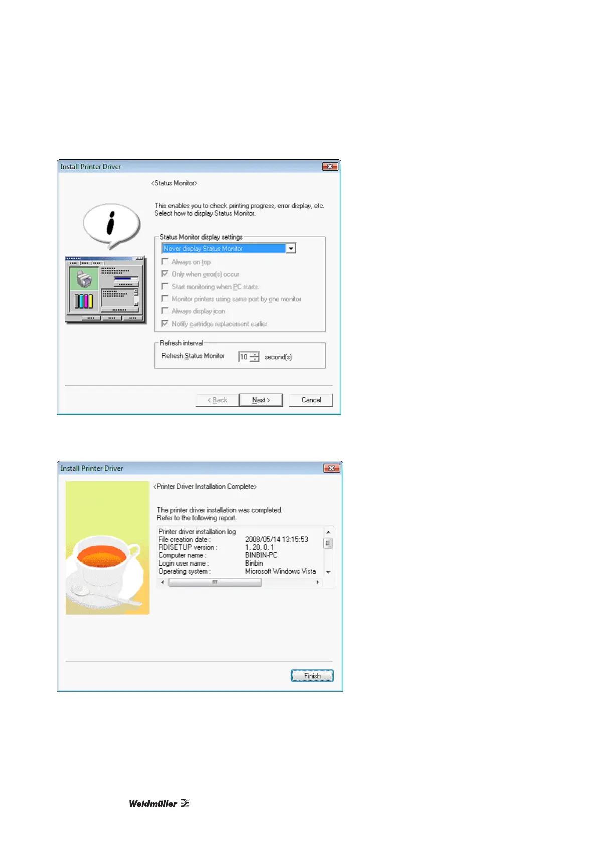 6 Deactivate the status monitor and click on [Next].