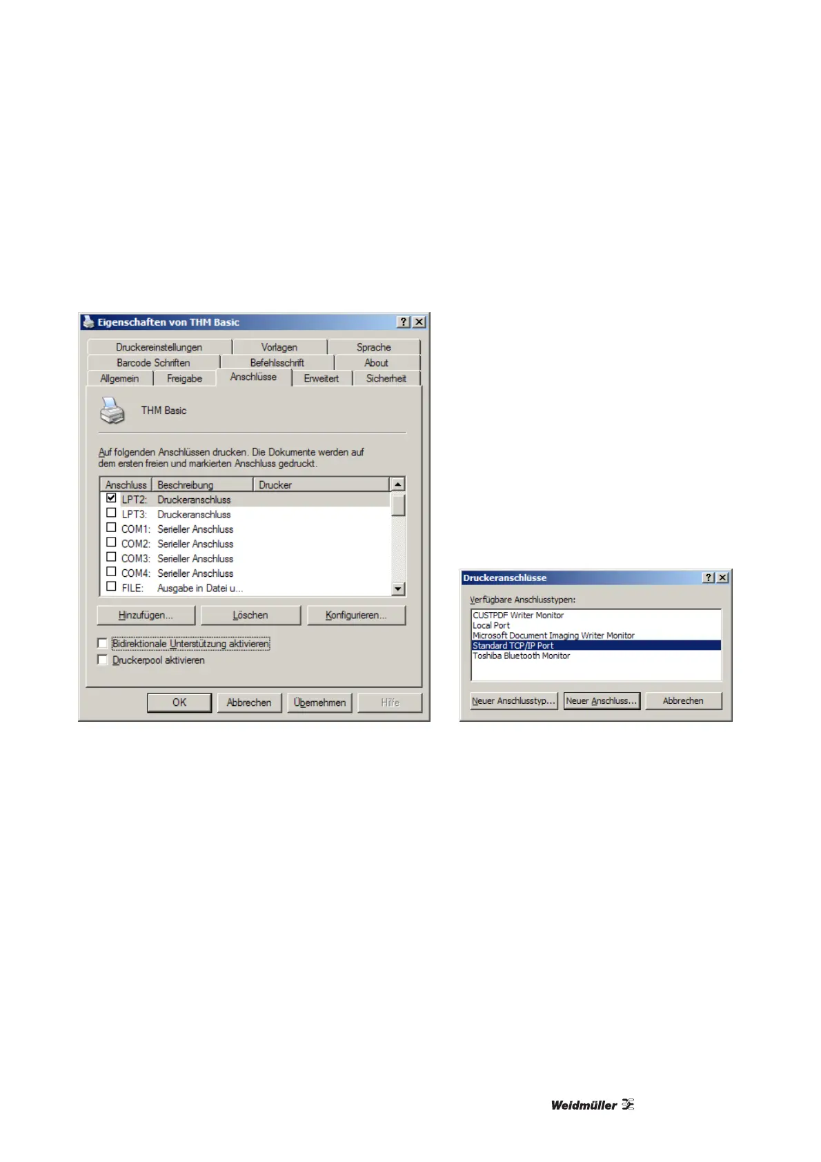 impresión THM Basic 300 y en las propiedades de impresión, en "conexiones", agregue una nueva co-