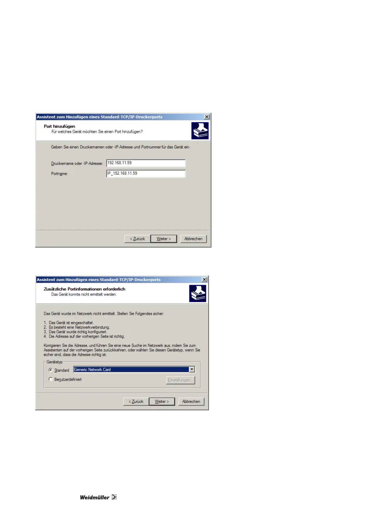 2 V průvodci pro přidání připojení TCP/IP zadejte IP adresu tiskárny.