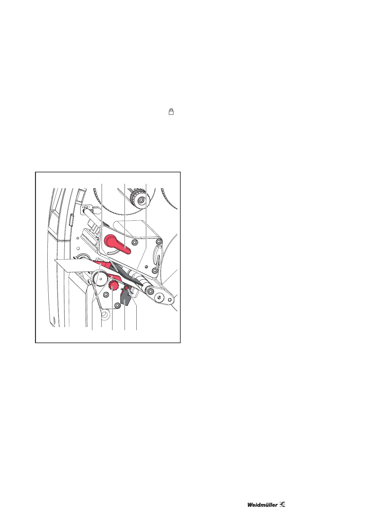 f Protáhněte pás etiket nad vnitřním navíječem tis-