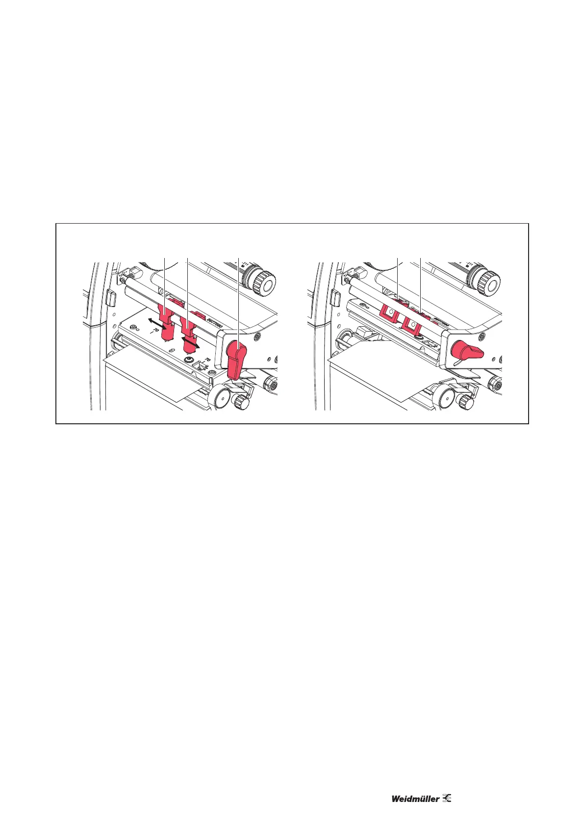 Figure 13 Réglage du système de pression de tête sur modèles avec guidage des consommables cen-