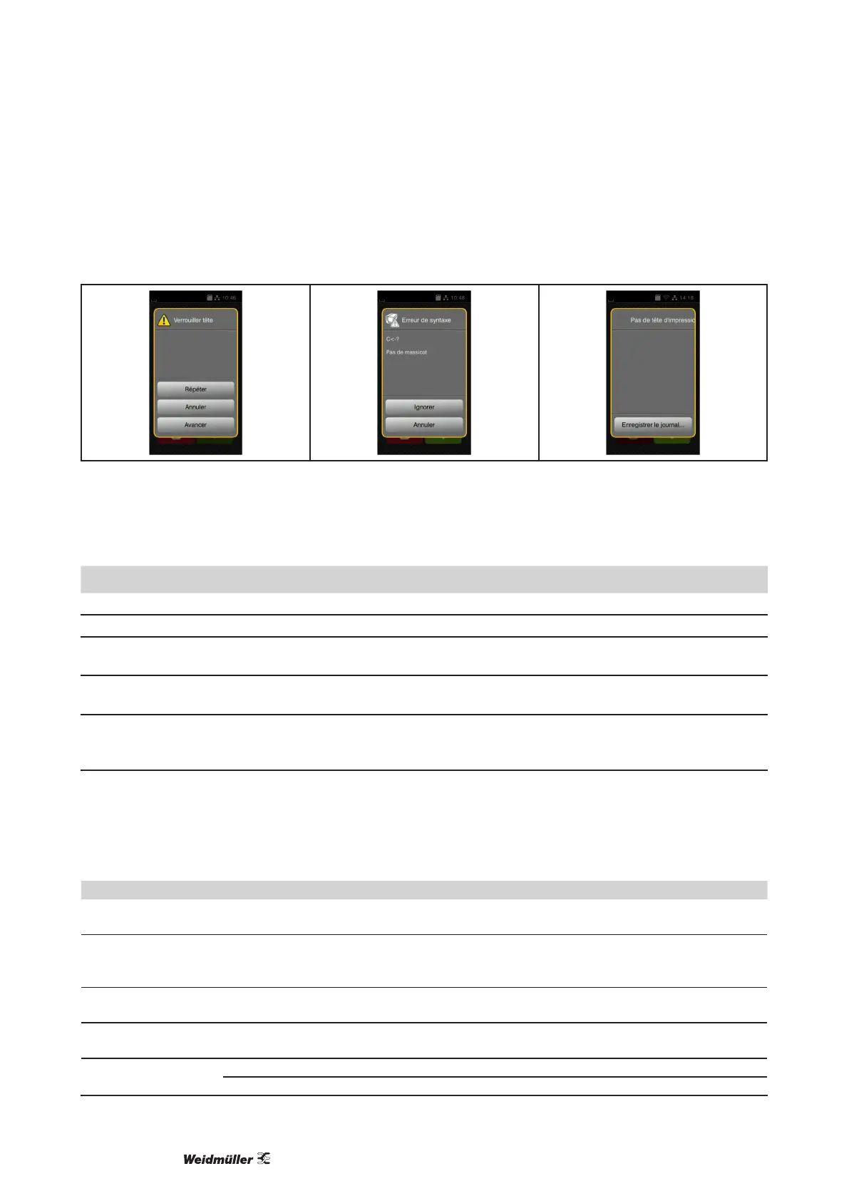 Letraitementdel'erreurdépenddesontype→„7.2 Messages d’erreurs et solutions“ sur la page 316.
