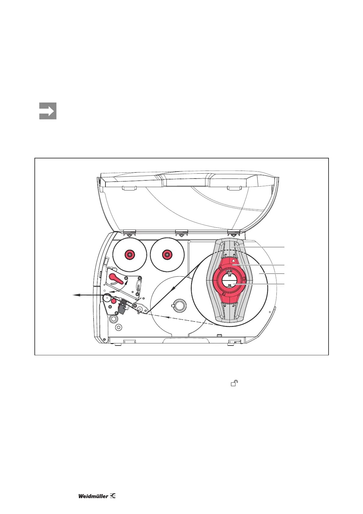 f Load label roll (3) on the roll retainer in such a way that the labels can be inserted into the printhead in the