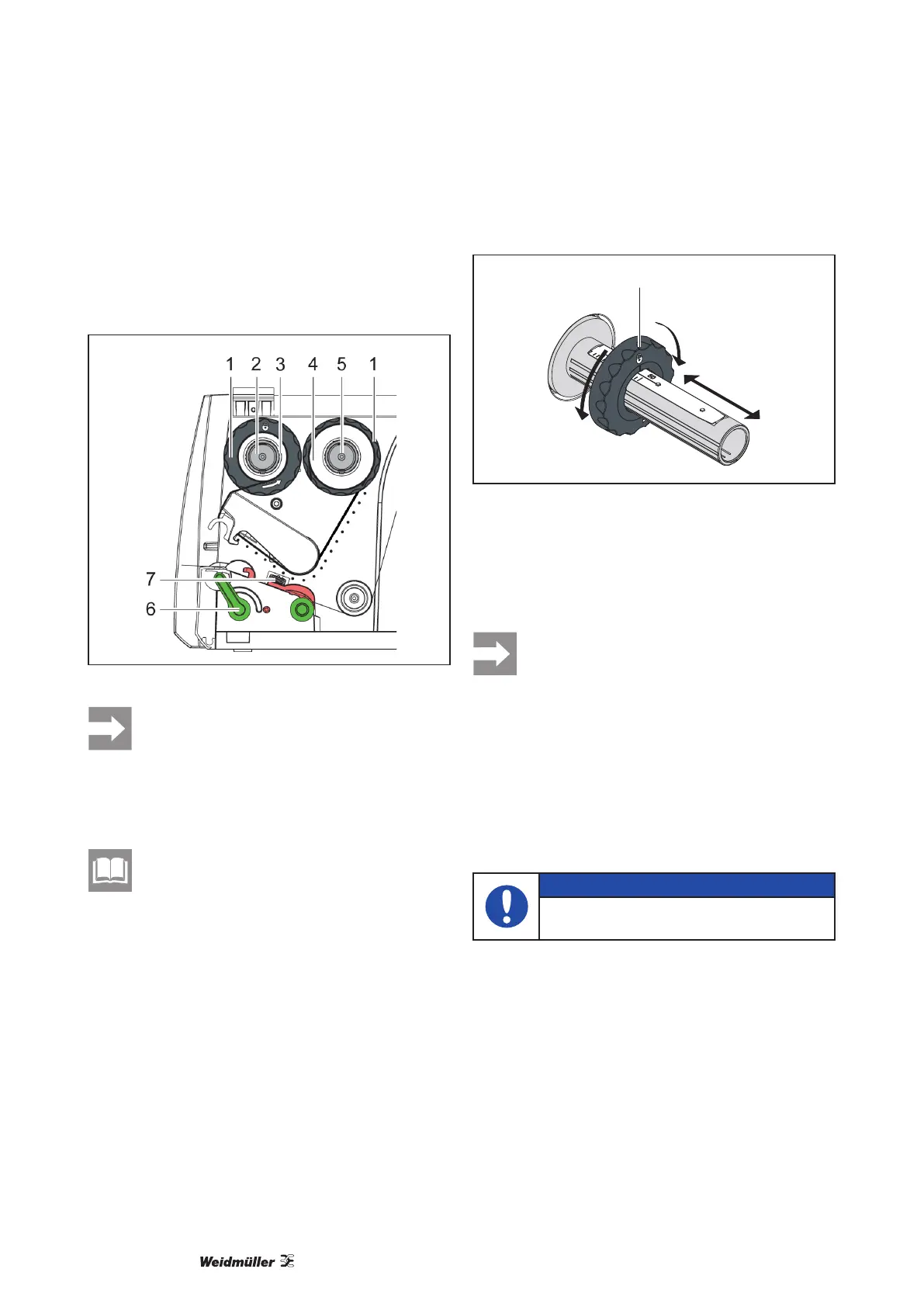 5 Positie van de randinstellers op de afwikkelaar