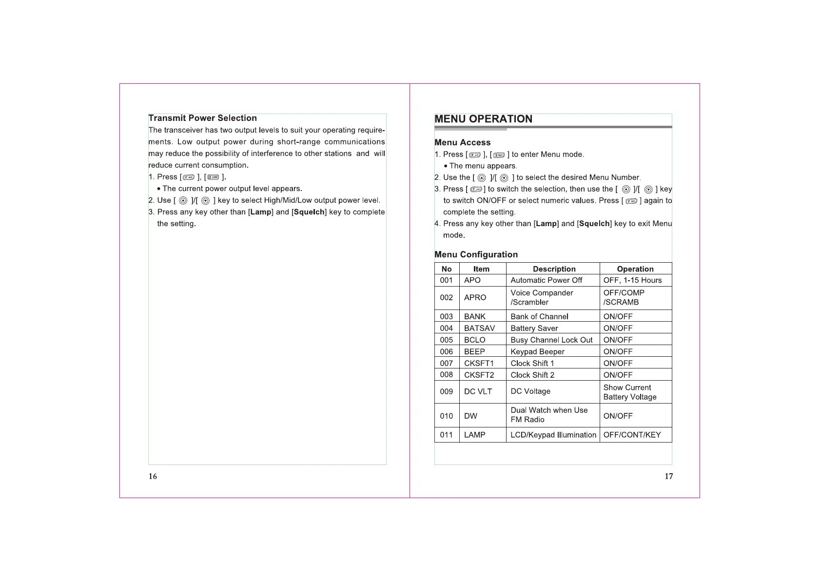 Weierwei VEV-V8 - MENU OPERATION; Menu Access; Menu Configuration
