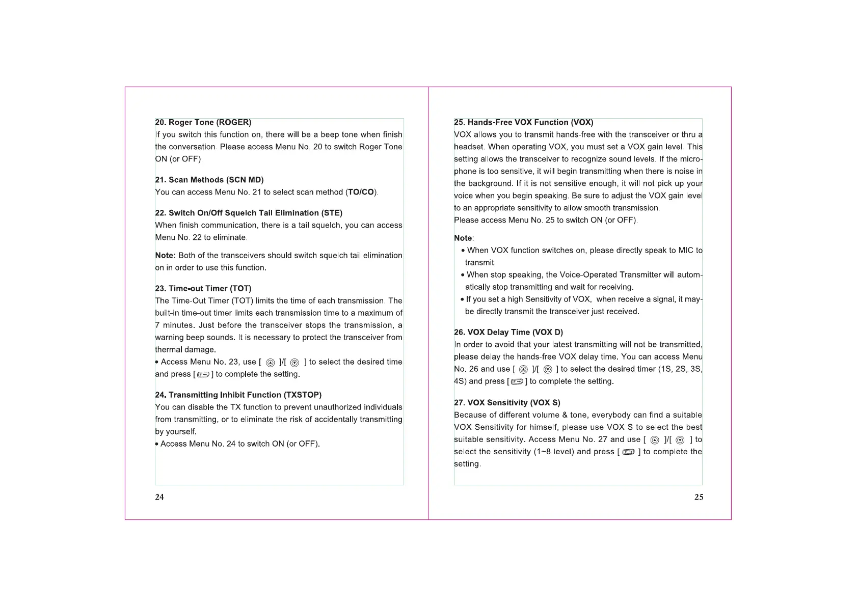 Weierwei VEV-V8 - Roger Tone; Scan Methods; Time-Out Timer; Transmitting Inhibit Function