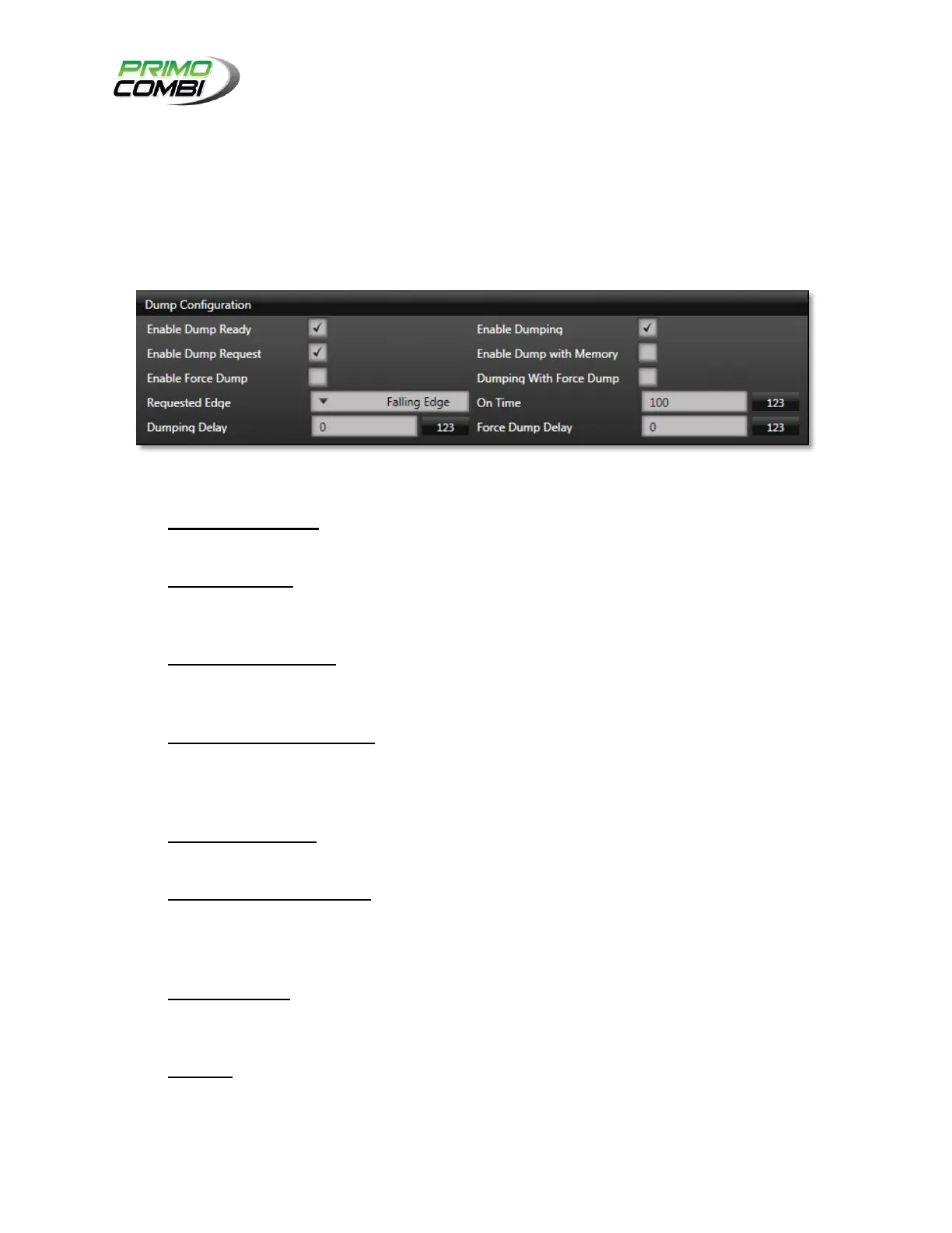 Enable Dump with Memory – Enabling this input will tell the PrimoCombi to remember if a