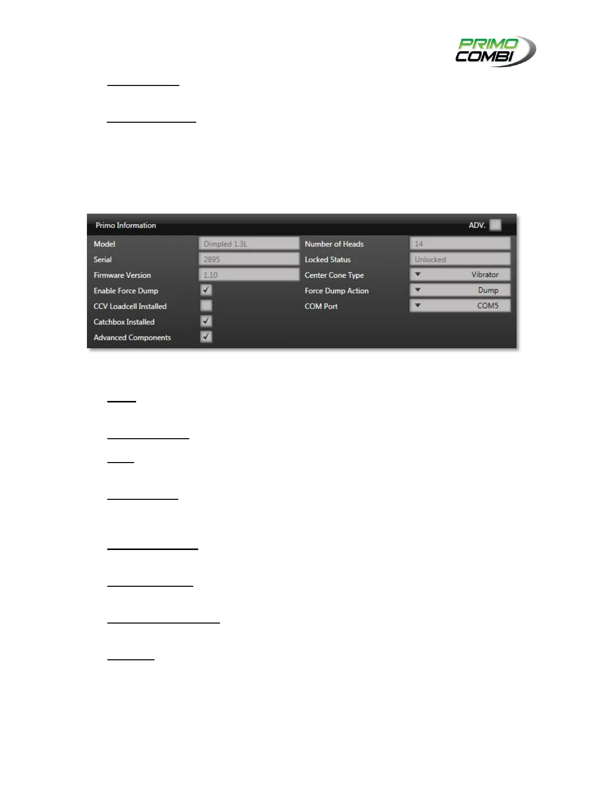 Serial – This field indicates the serial number of the PrimoCombi. This will be required when