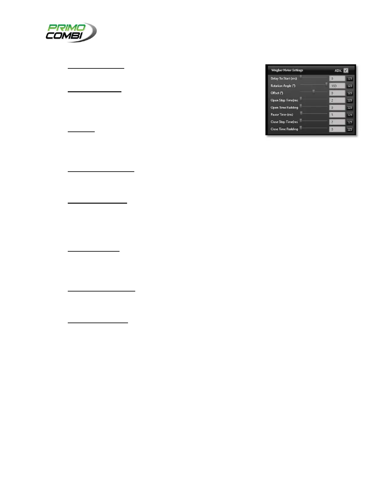 milliseconds to wait until the weigher motor begins to activate.