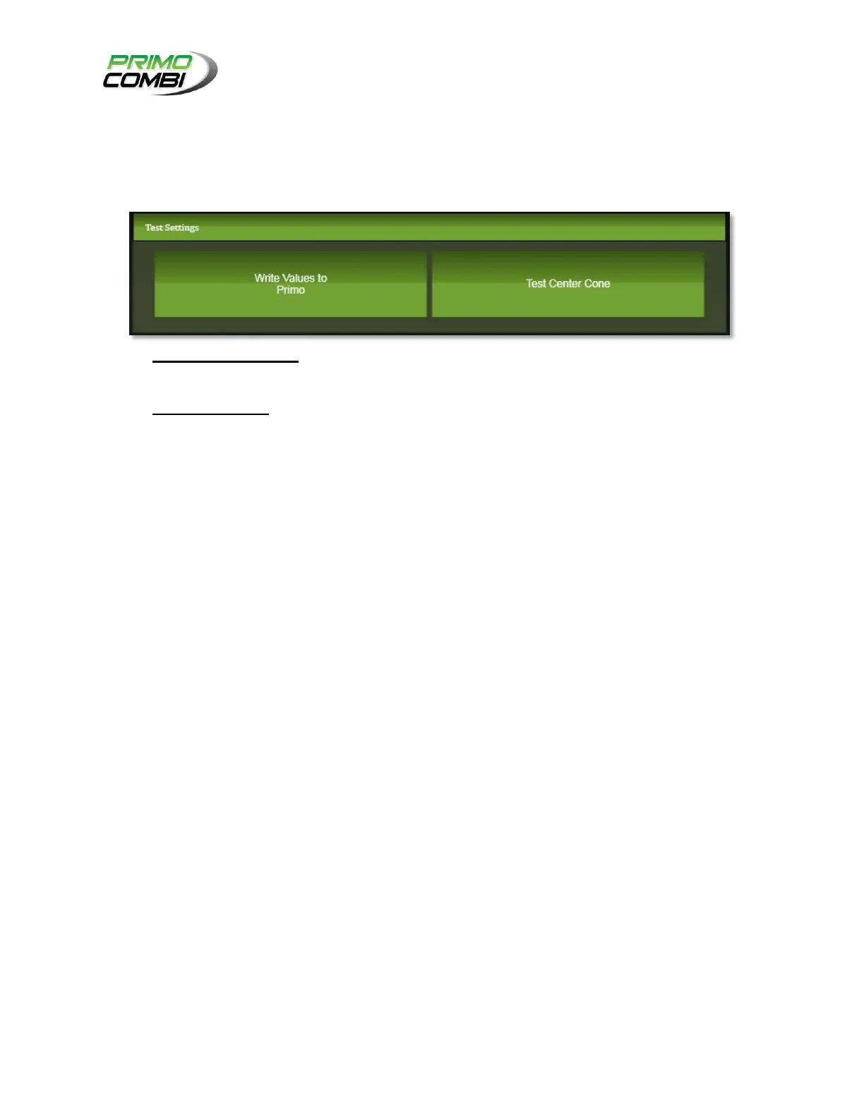Write Values to Primo – Clicking this button will send the current values for the center cone