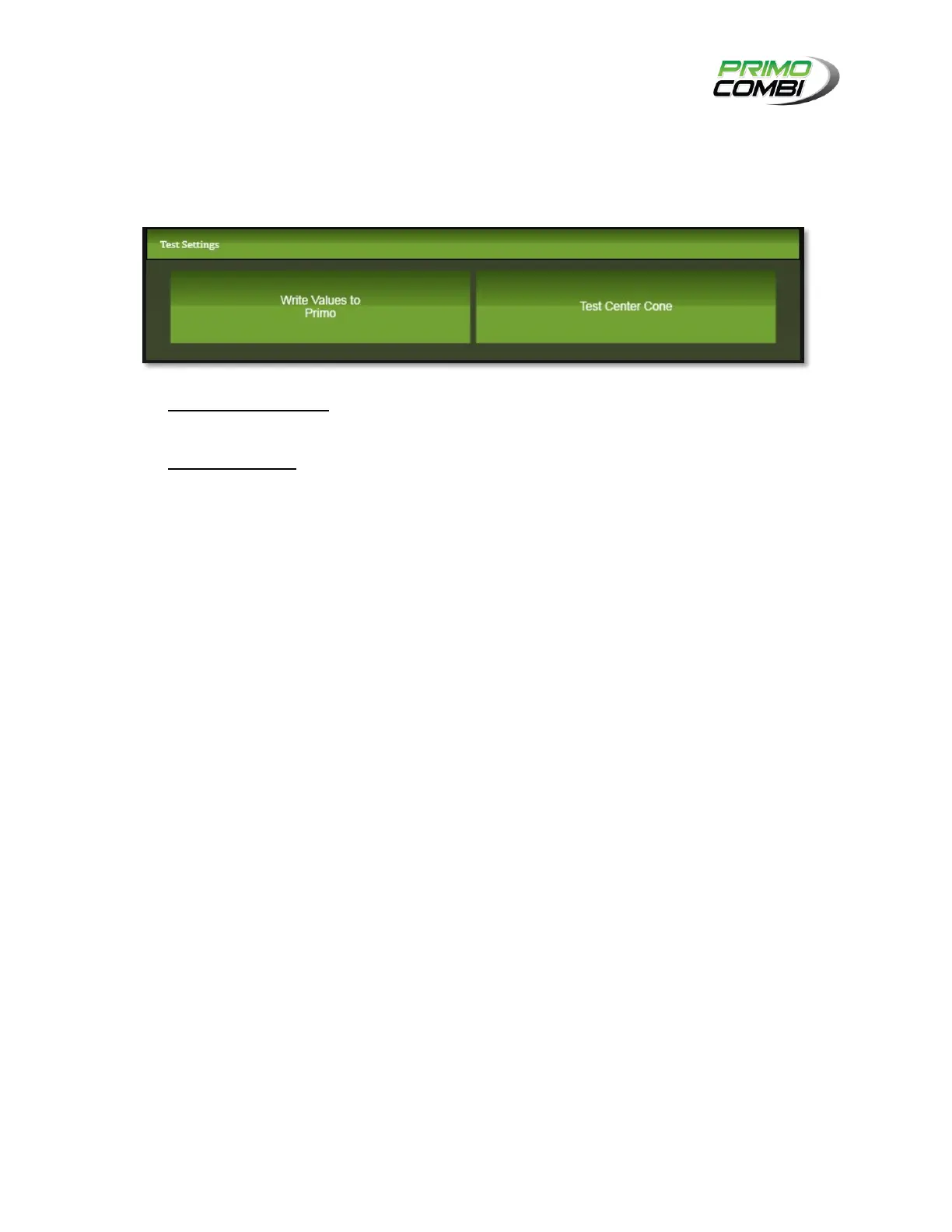 Write Values to Primo – Clicking this button will send the current values for the center cone
