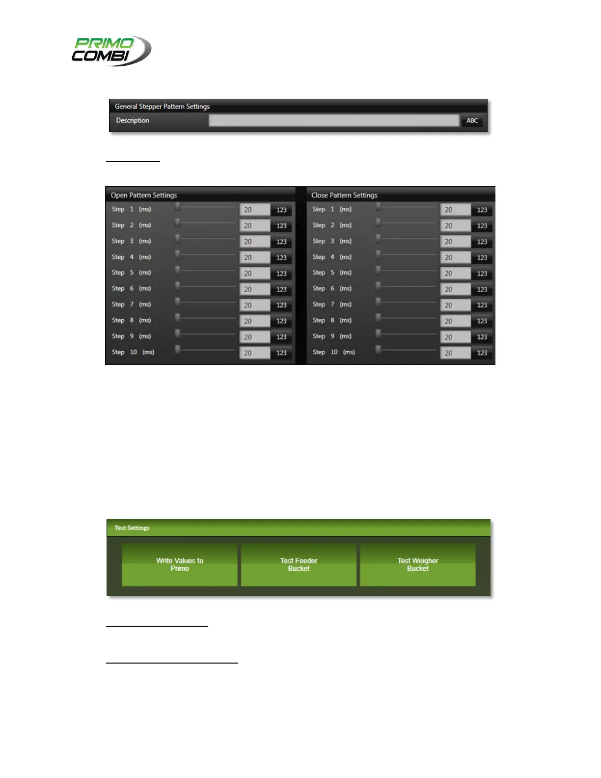 Write Values to Primo – Clicking this button will send the current values for the catch box