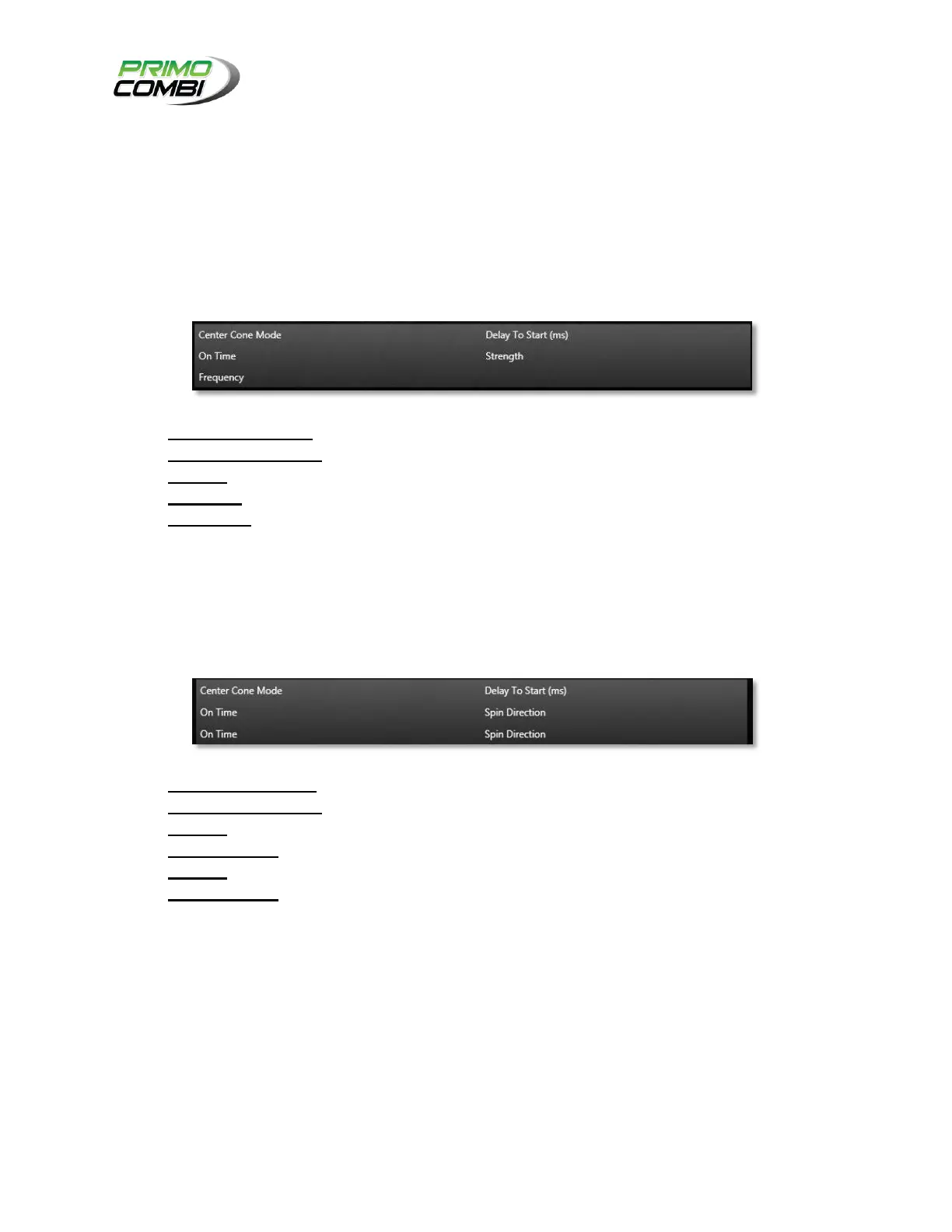 Displays the center cone vibrator Parameters loaded into the PrimoCombi. For details on each field