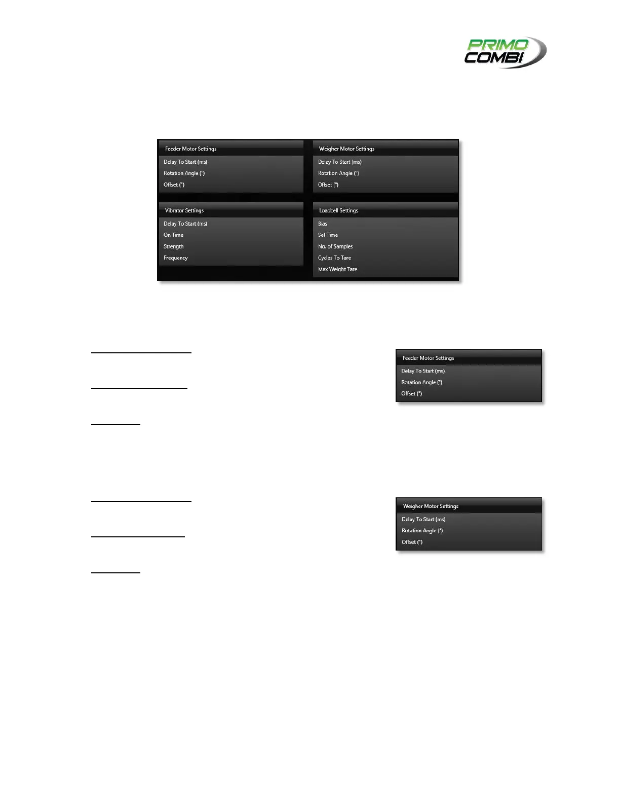ROTATION ANGLE (°) – Indicates how many degrees the feeder