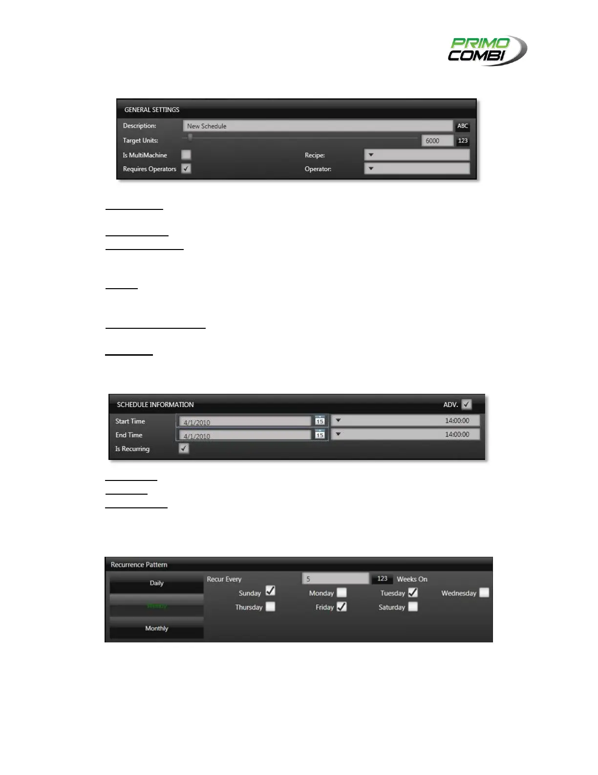 Recurrence patterns allow you to have a schedule repeat itself on a daily, weekly or monthly