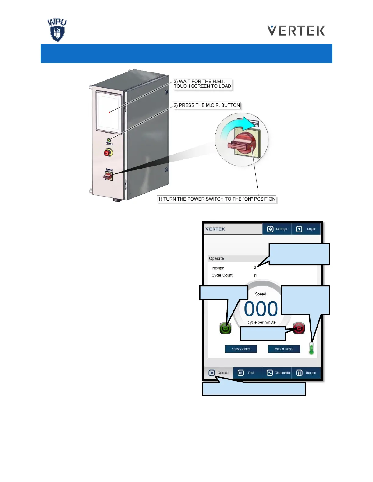 3. Navigate to the H.M.I.’s Operate Screen. Setup