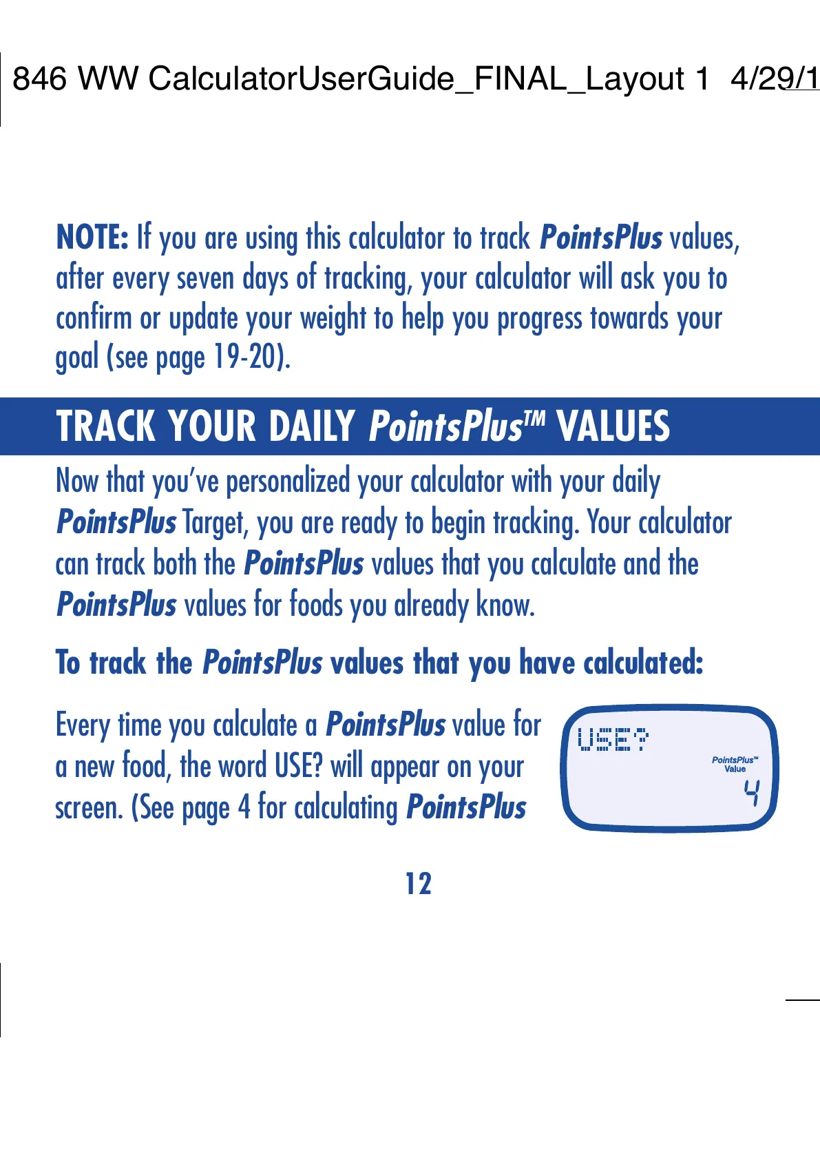 screen. (See page 4 for calculating PointsPlus