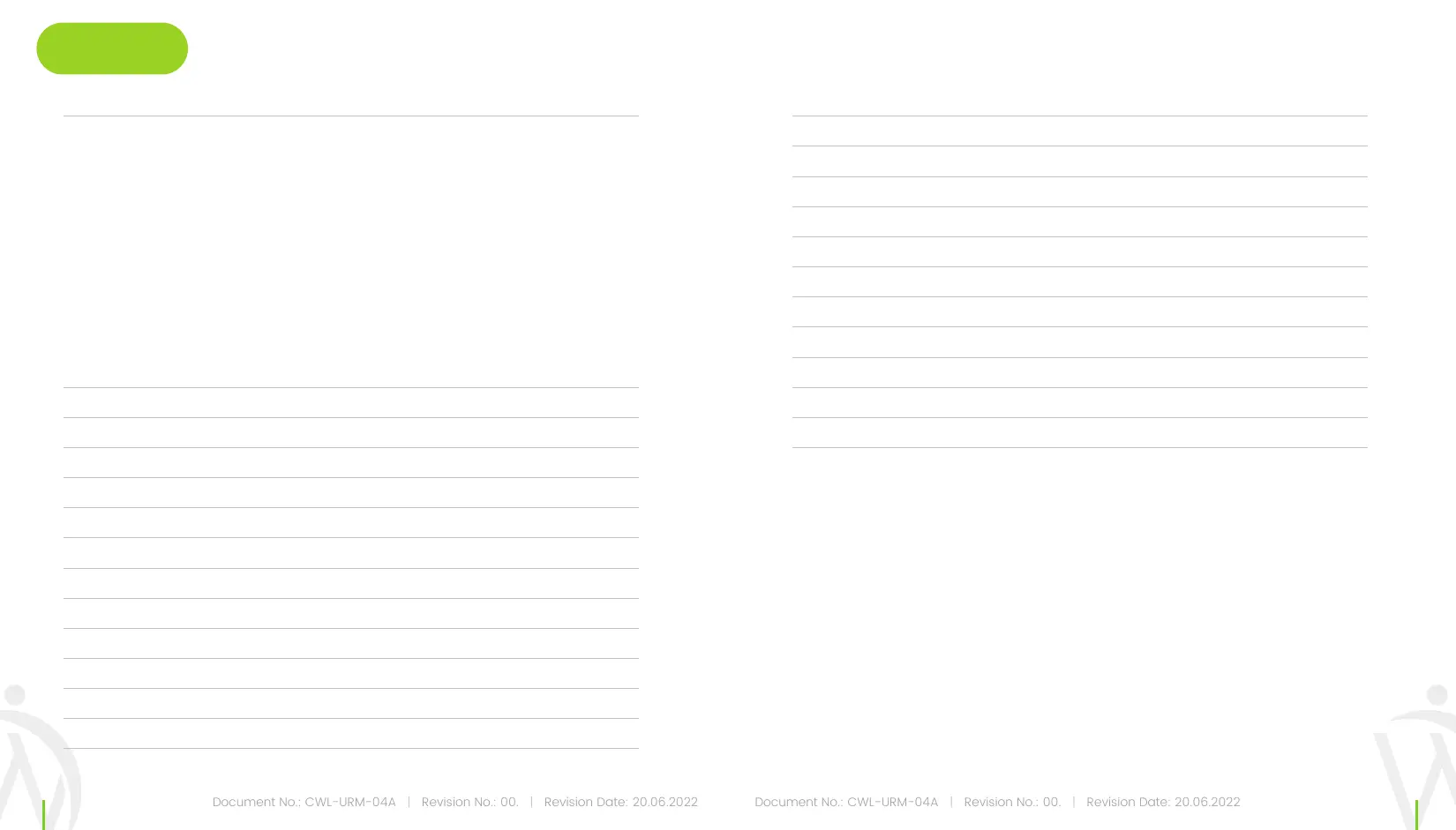 Document No.: CWL-URM-04A | Revision No.: 00. | Revision Date: 20.06.2022